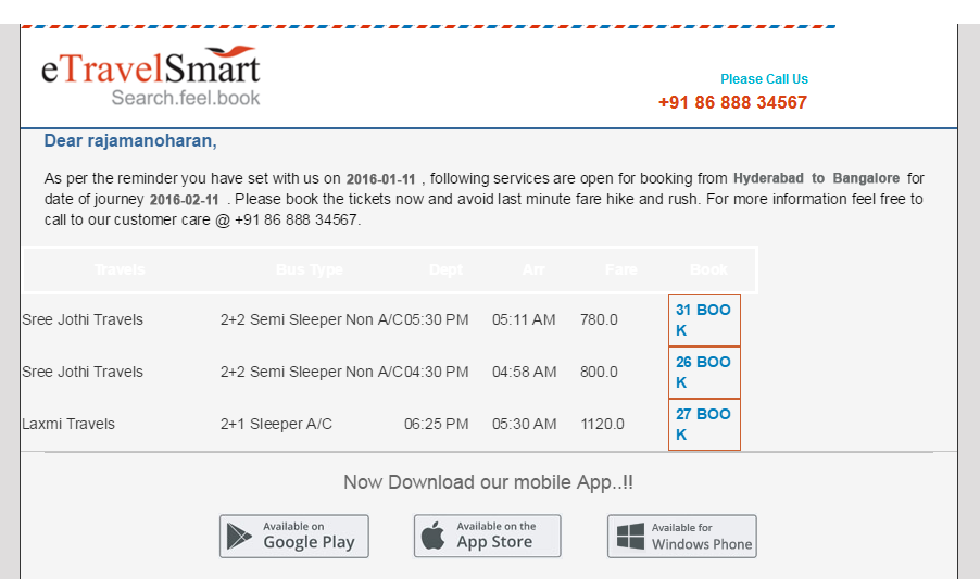 2. Like the way you will get a mail when the buses are available on your wish dates..