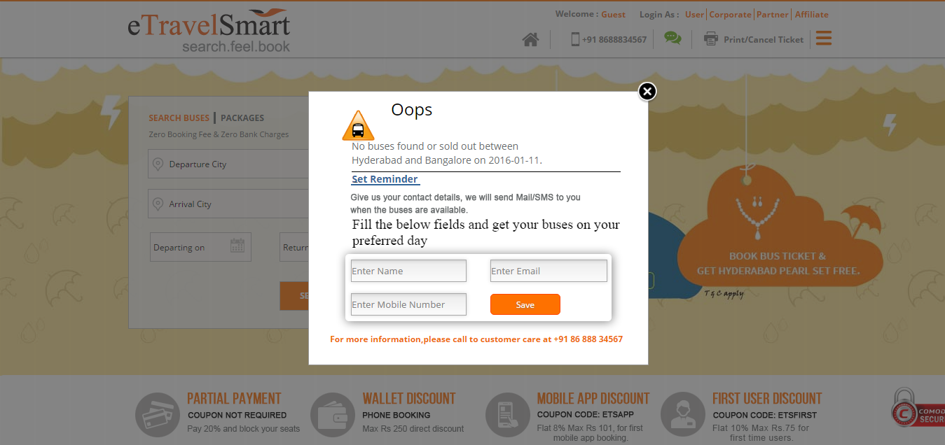 You just give us the source city, destination city, date of journey and your contact details. Our intelligent system sends you an email and sms with the list of available buses whenever it opens for booking.