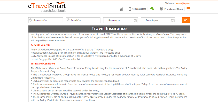 1. Get Travel Insurance for free while booking bus tickets with eTravelSmart.com